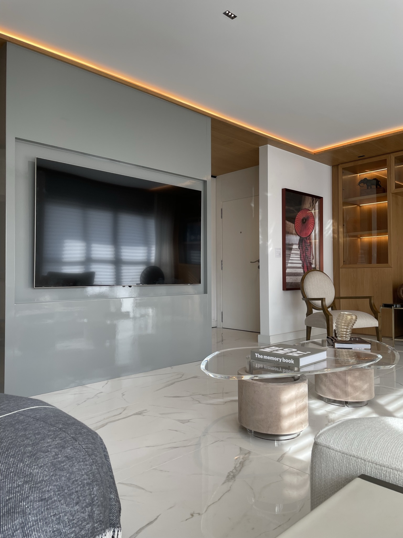 O ritmo acelerado de São Paulo fica lá fora, pois dentro deste apartamento, a ideia é tranquilidade e os tons sugerem isso. Ele reflete a vida urbana com conforto, personalidade e fluidez, enquanto equilibra praticidade em um espaço funcional, acolhedor e um olhar atento ao detalhe e à individualidade de quem vive ali.